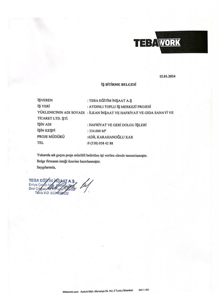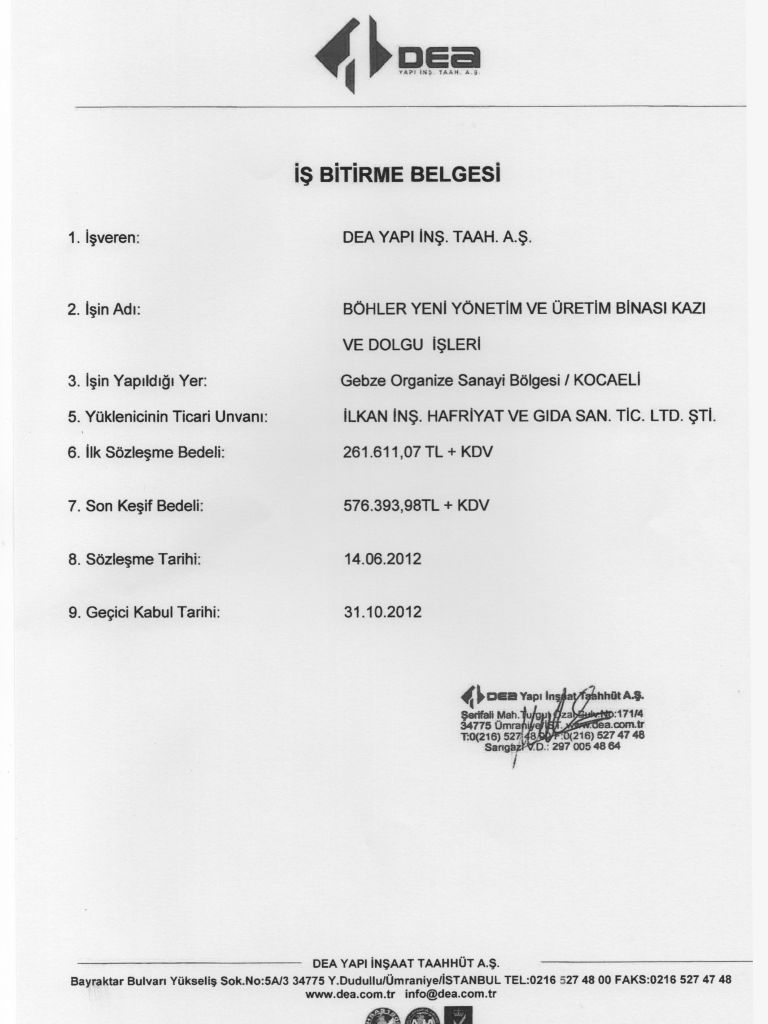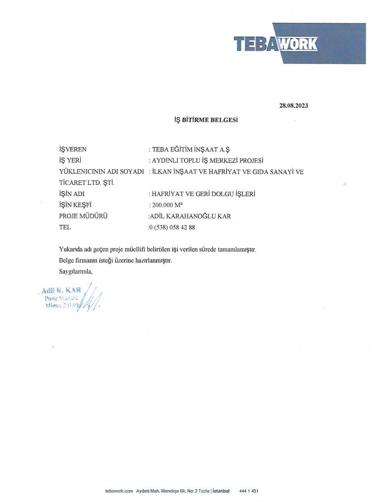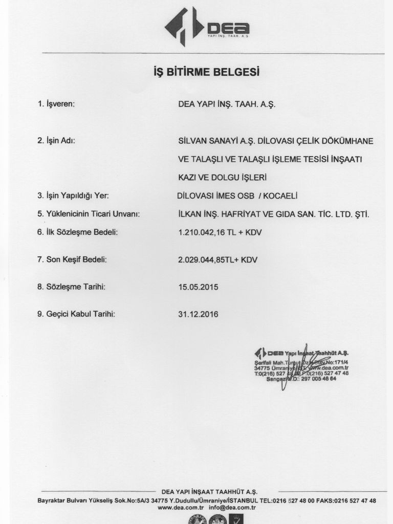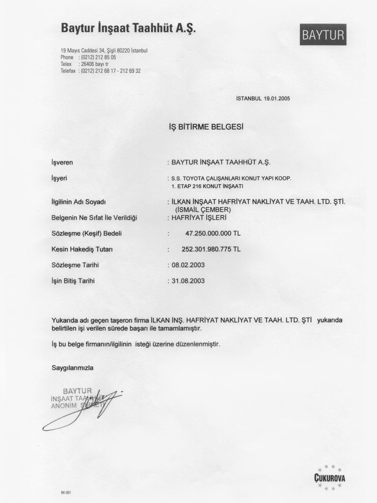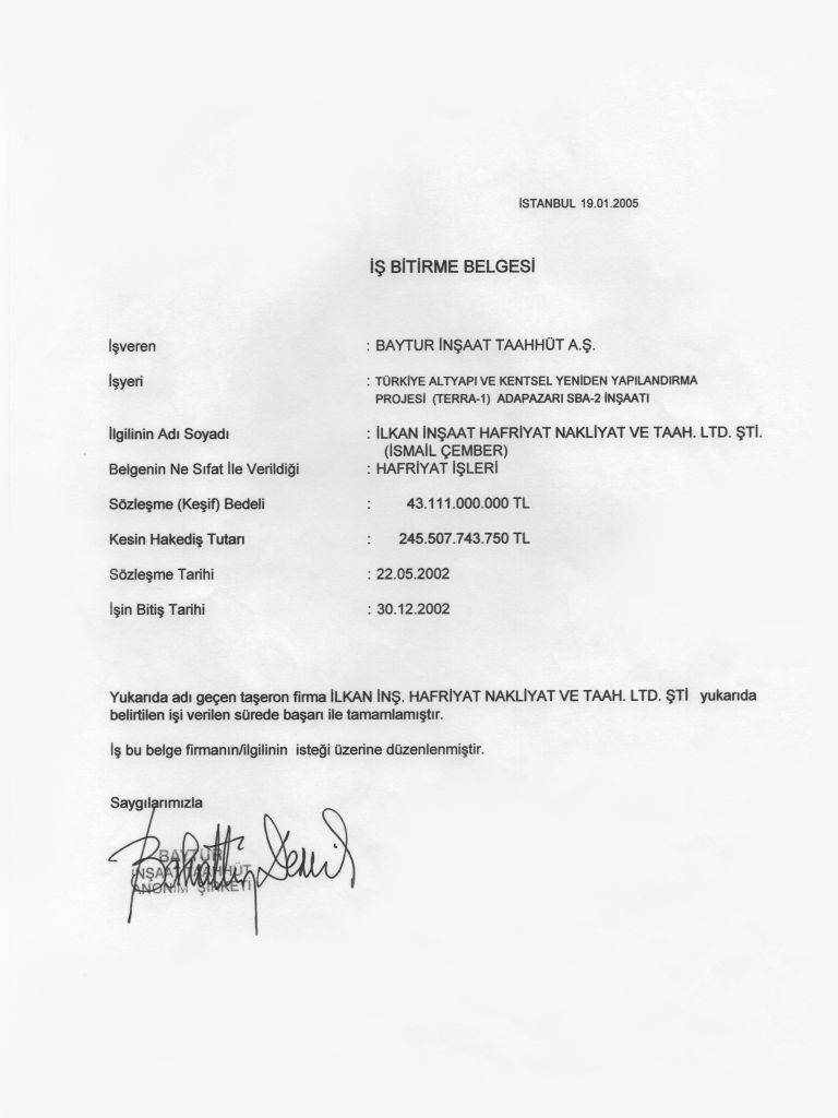 İş Bitirme Belgeleri