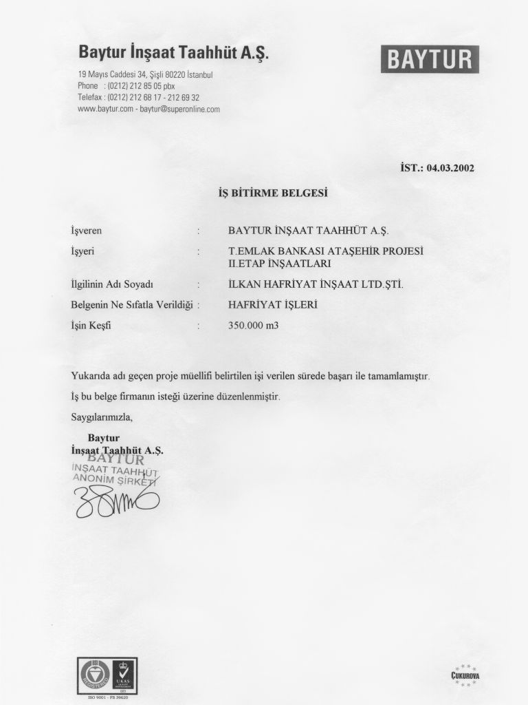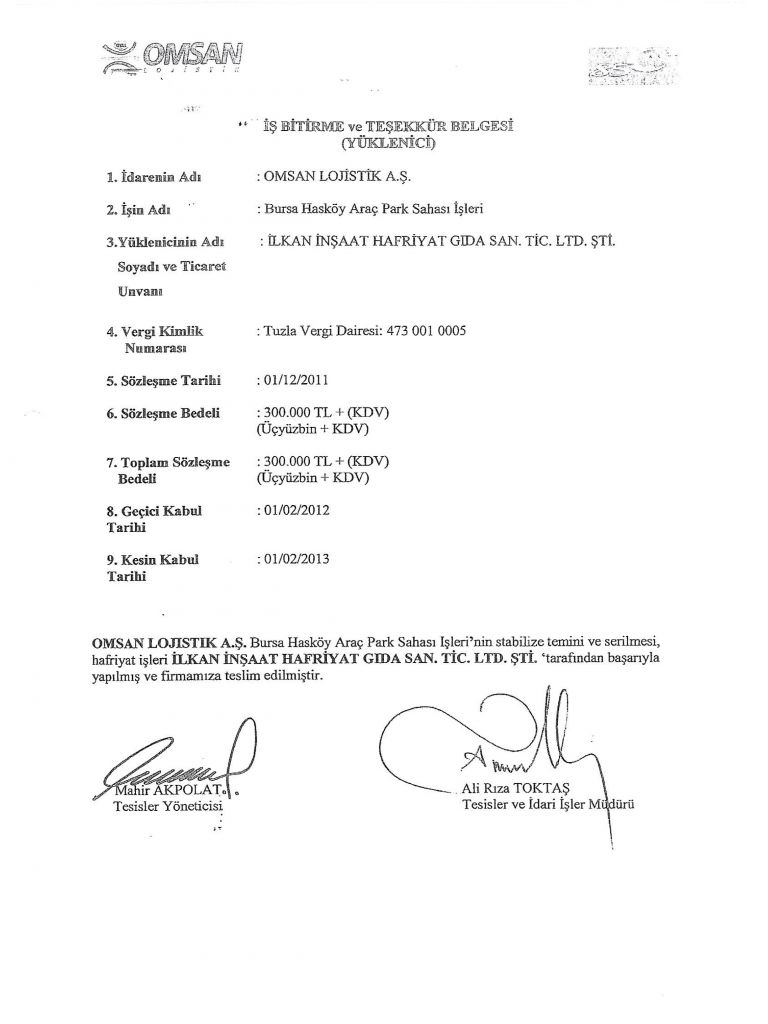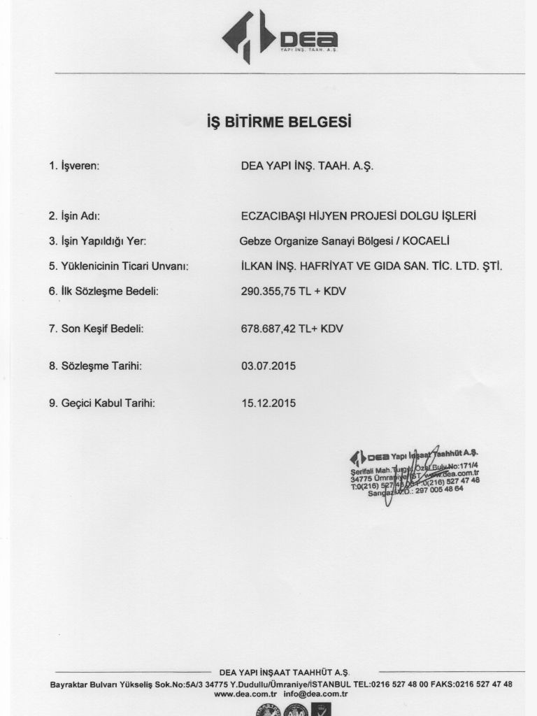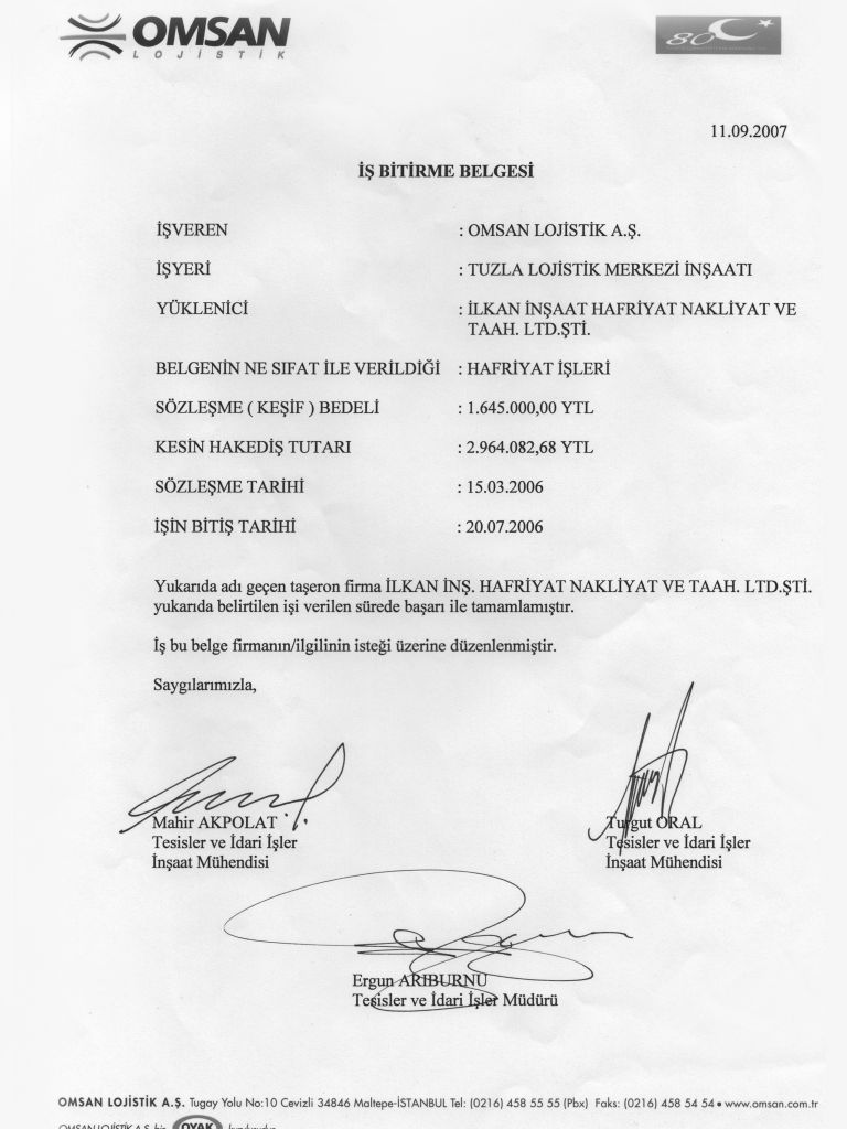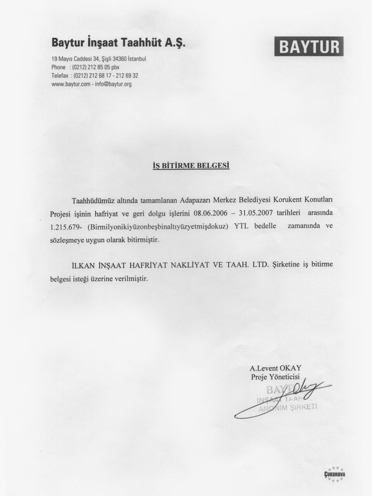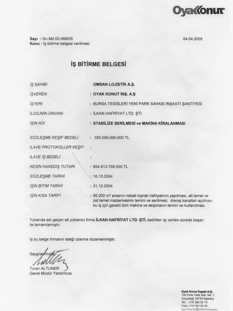 İş Bitirme Belgeleri