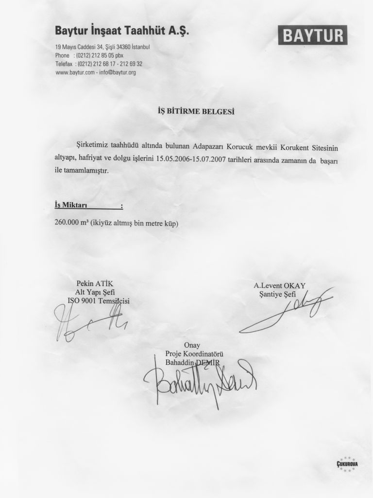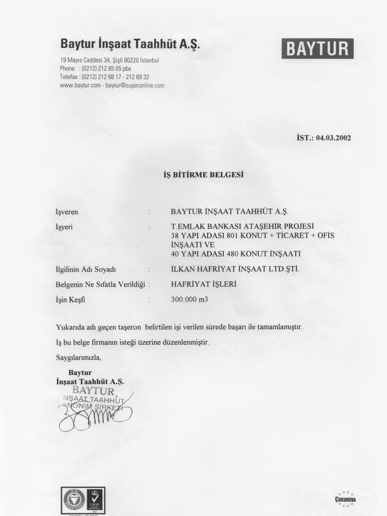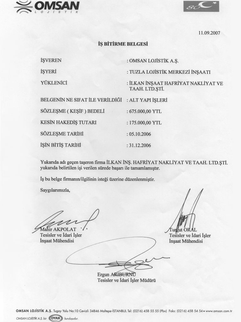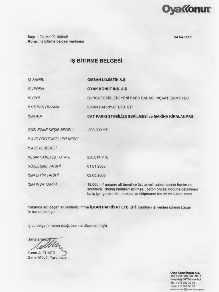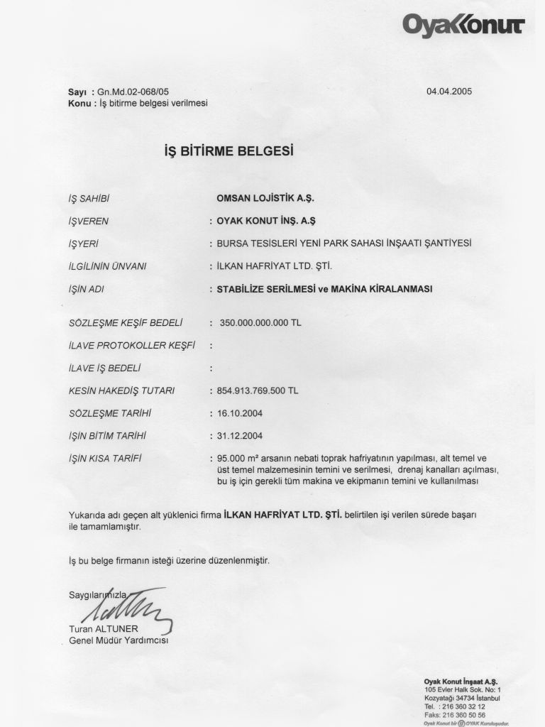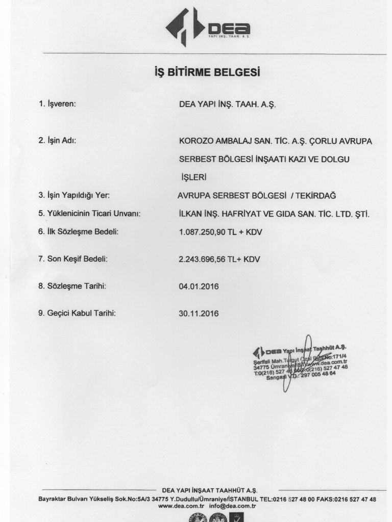 İş Bitirme Belgeleri