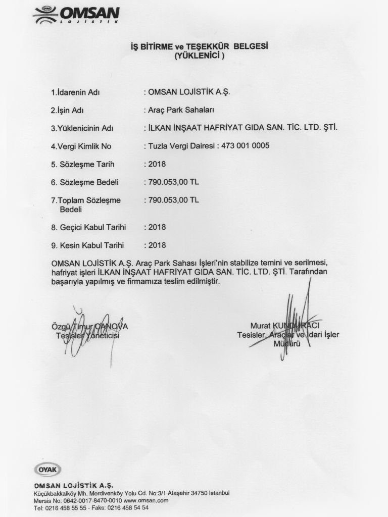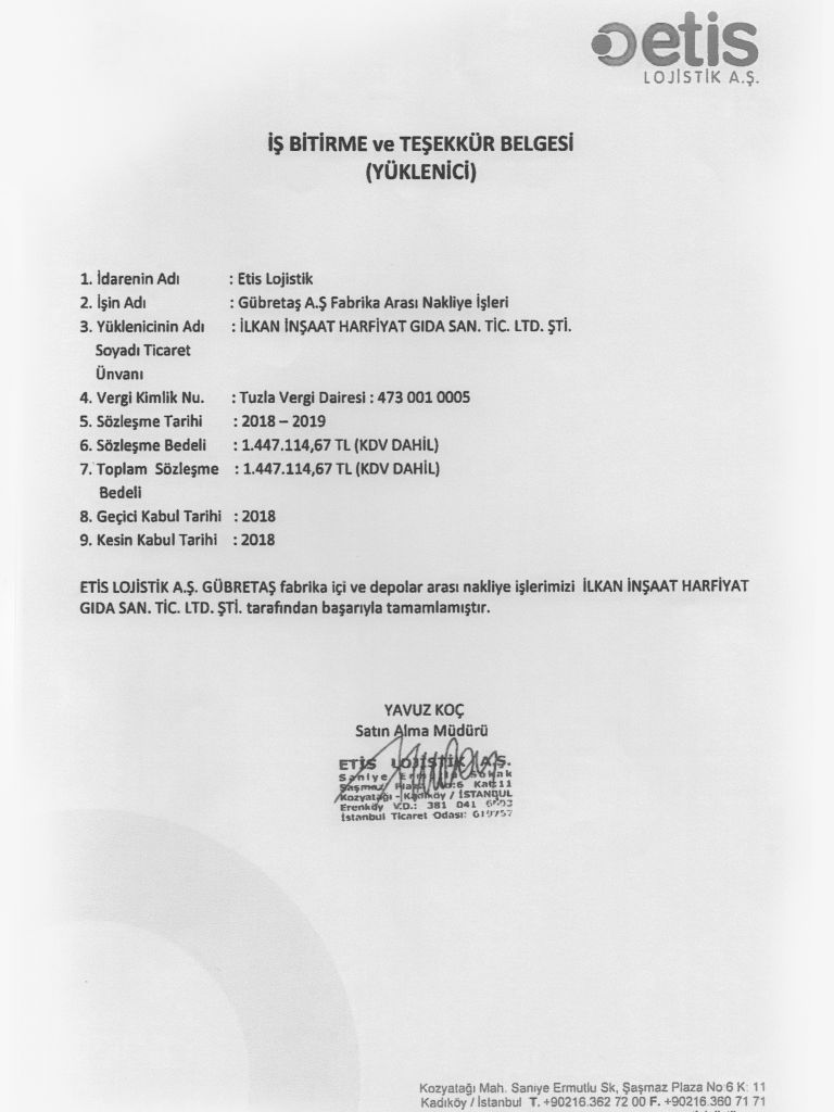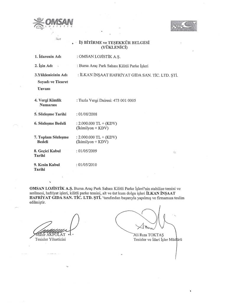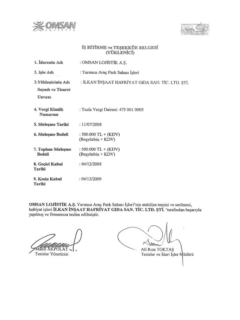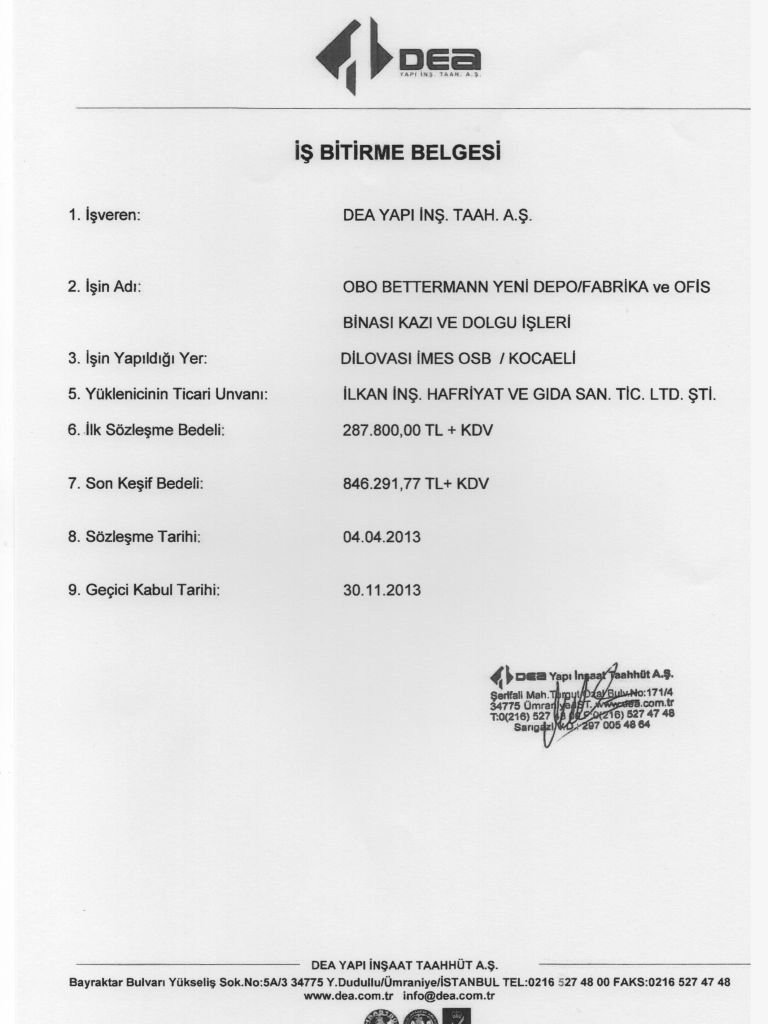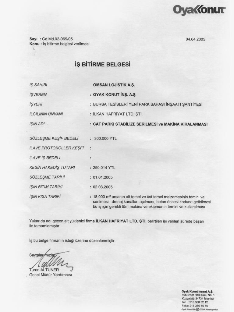 İş Bitirme Belgeleri